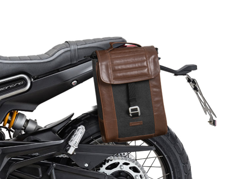 SHAD's cafe racer pannier fitting kits are designed to be a slimline and simple solution that keeps the SR38 saddle bags secure and safe on the bike. The new QuickClip system allows you to easily attach your pannier(s) to your bike and the integrated lock system then secures the bag to the bike.