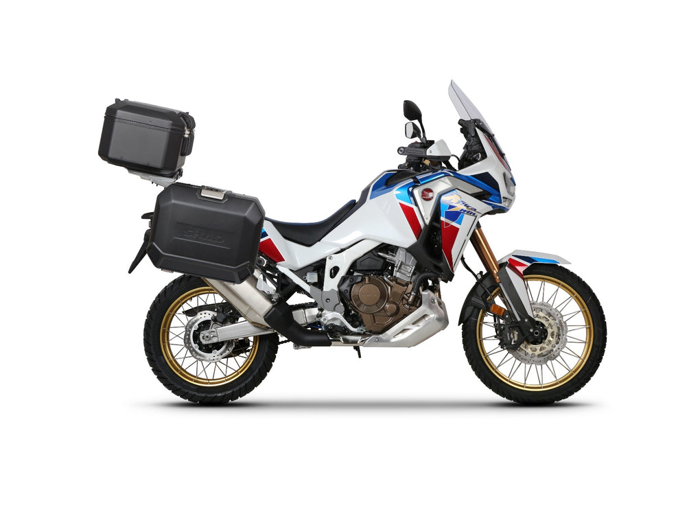 SHAD top box fitting kits are designed to allow you to mount a range of SHAD top boxes to your Honda Africa Twin CRF1100L Adventure Sports. SHAD's bike specific fitting kits fit onto the tail of the bike and then a SHAD mounting plate (included with all SHAD top boxes except Terra cases) securely bolts to the fitting kit which then allows a SHAD top box to be easily attached.