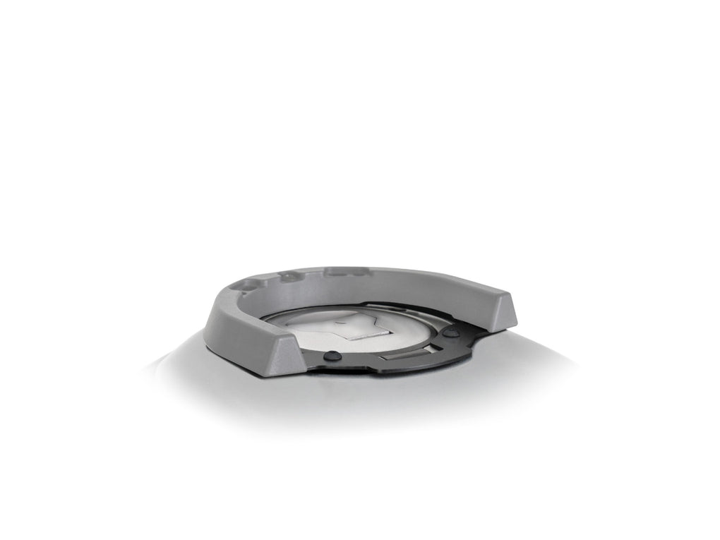 Supplied with each Click System tank bag is a horseshoe shaped bracket which is fastened onto the fuel cap surround creating the one click fasten and release system.
