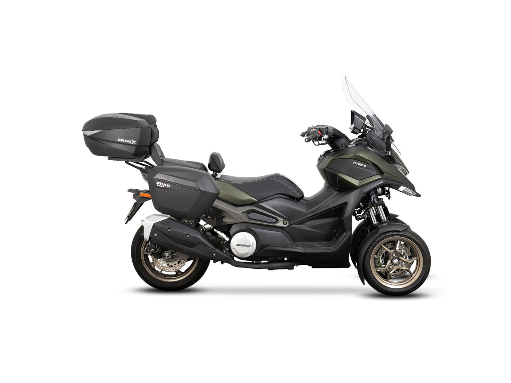 SHAD top box fitting kits are designed to allow you to mount a range of SHAD top boxes to your Kymco CV3. SHAD's bike specific fitting kits fit onto the tail of the bike and then a SHAD mounting plate (included with all SHAD top boxes except Terra cases) securely bolts to the fitting kit which then allows a SHAD top box to be easily attached.