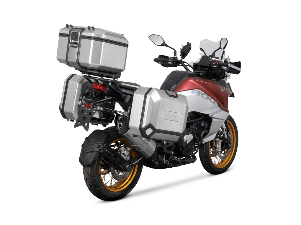 SHAD top box fitting kits are designed to allow you to mount a range of SHAD top boxes to your QJ Motor SRT 800. SHAD's bike specific fitting kits fit onto the tail of the bike and then a SHAD mounting plate (included with all SHAD top boxes except Terra cases) securely bolts to the fitting kit which then allows a SHAD top box to be easily attached.