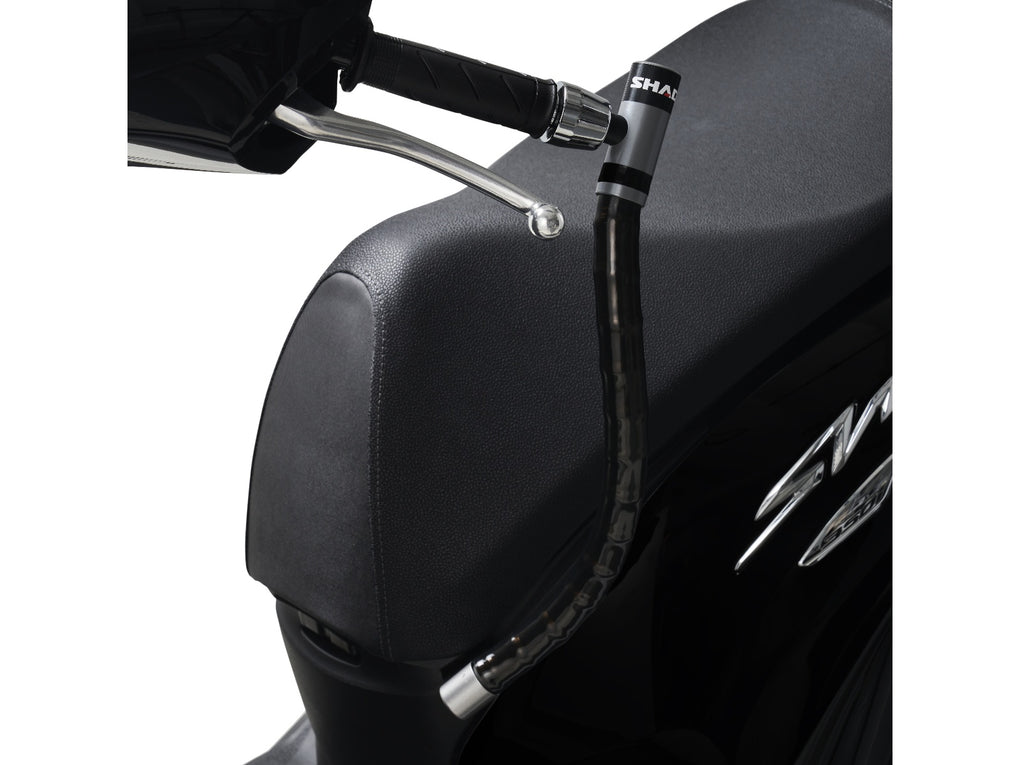 A clean and practical solution to securing your vehicle and optionally a helmet. The Series 2 SHAD handlebar lock is available in 3 sizes, 38cm, 44cm and 49cm to fit with a range of different scooters. The length required is determined by the fitting kit.