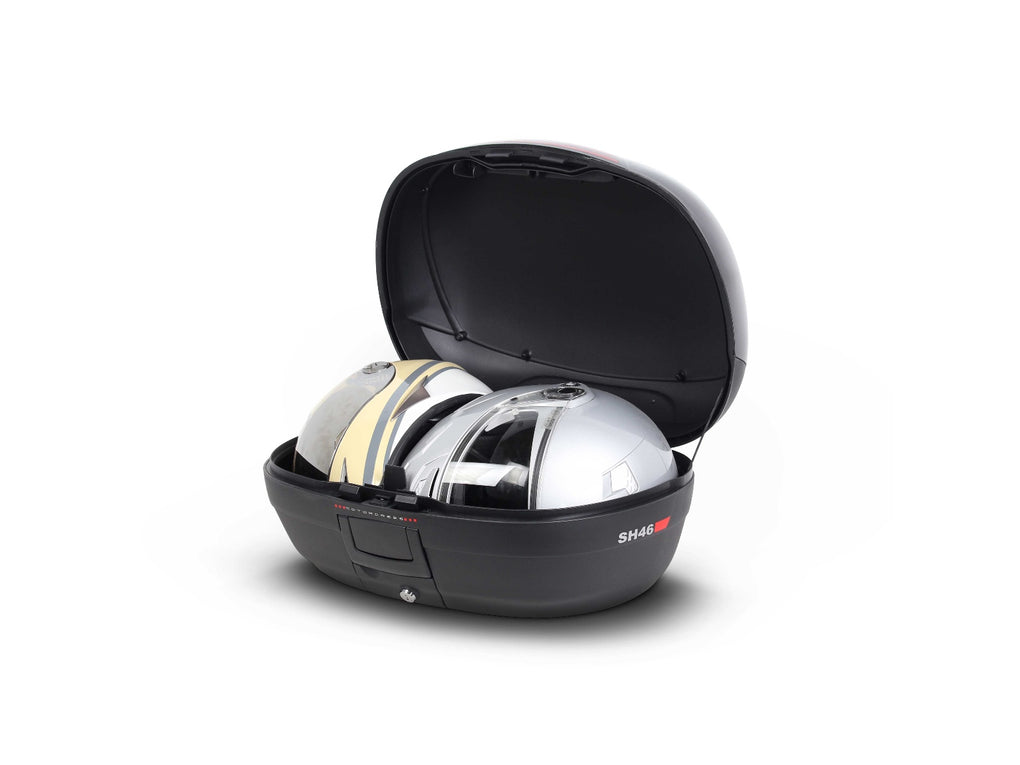 The SH46 top box is a larger sized box in SHAD’s top box range, weighing just over 4kg but still being able to comfortably carry 2 full face helmets or a full face helmet and lots of accessories, making it perfect for bigger types of bikes.