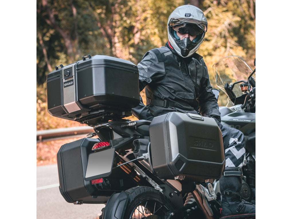 SHAD Terra panniers are designed to be used with the new 4P pannier mounting system and once mounted, offer a side opening system which gives easy and full view to all your belongings whilst keeping them in place with the parcel tray (which folds out of the way) and mesh restraint system.